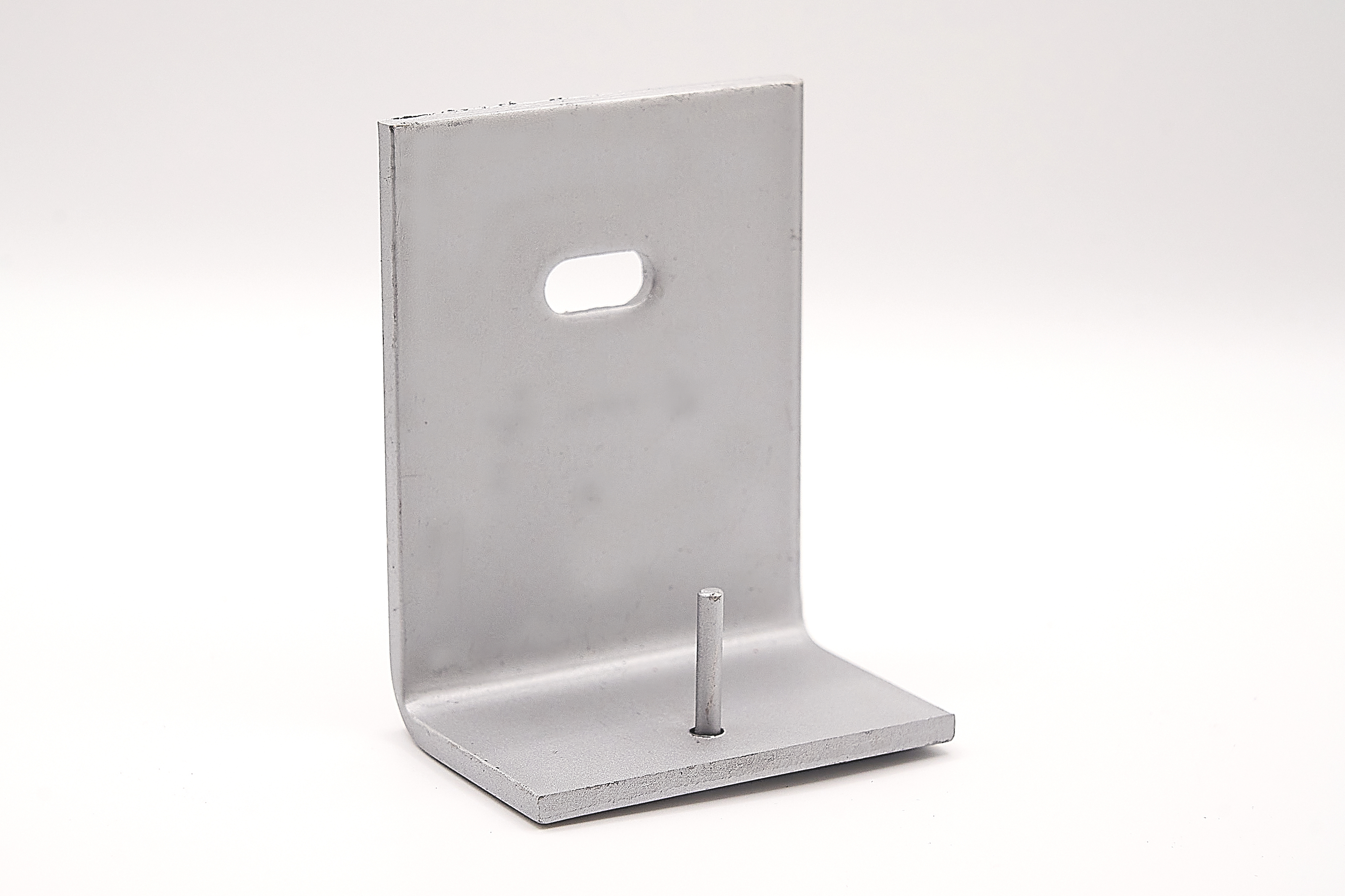 A right-angled support bracket with a single dowel post and one horizontal slot for mounting.