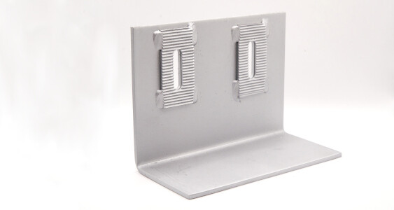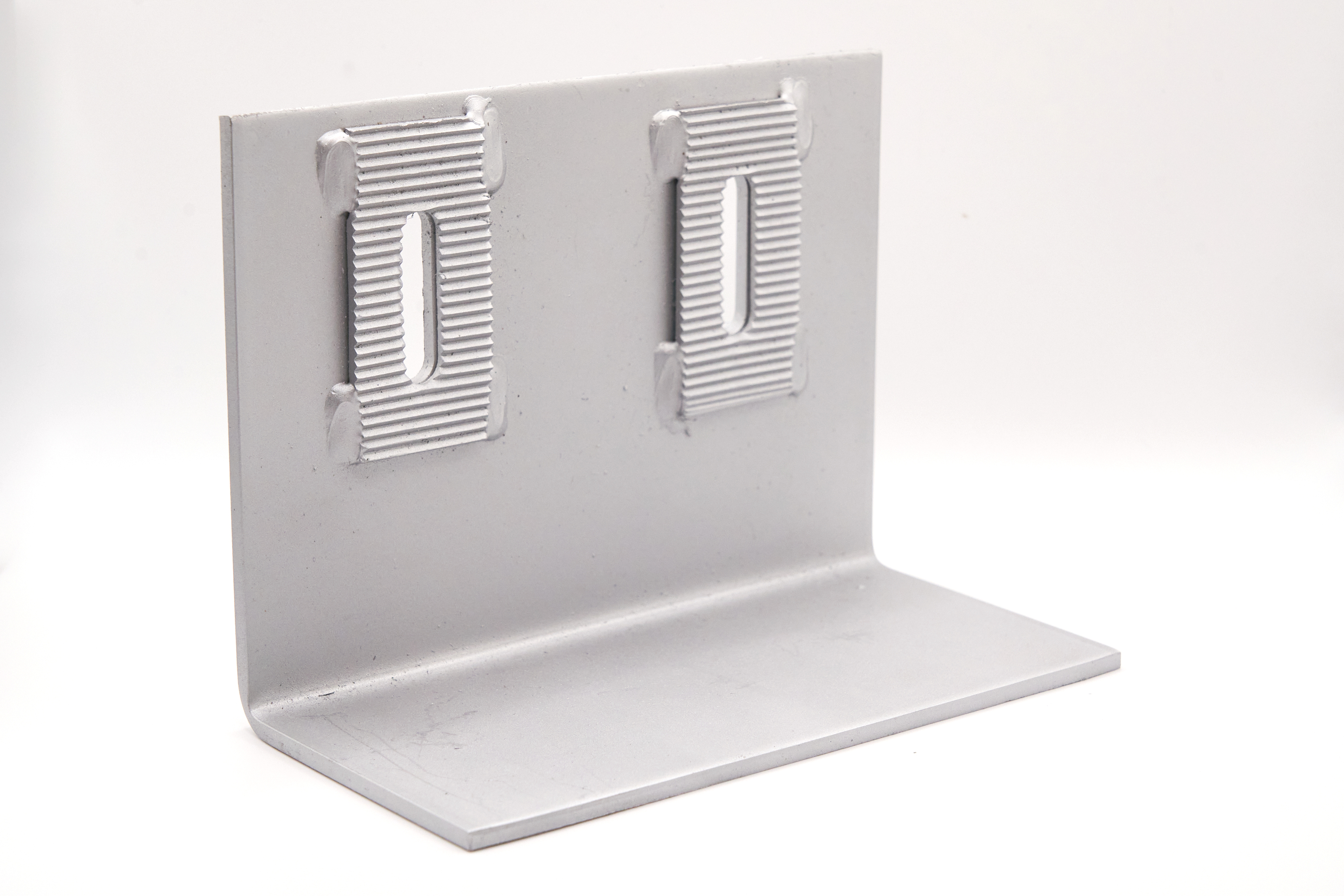 A right-angled support bracket with two vertical mount slots with serrated washers to allow for vertical adjustment.