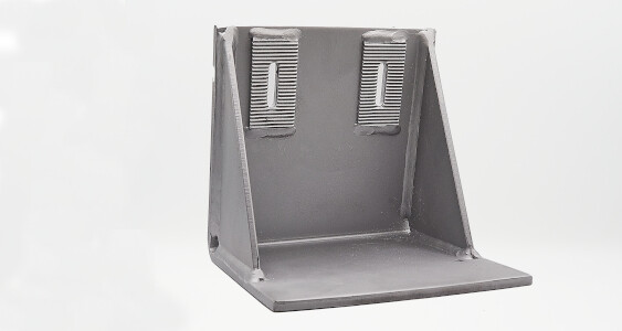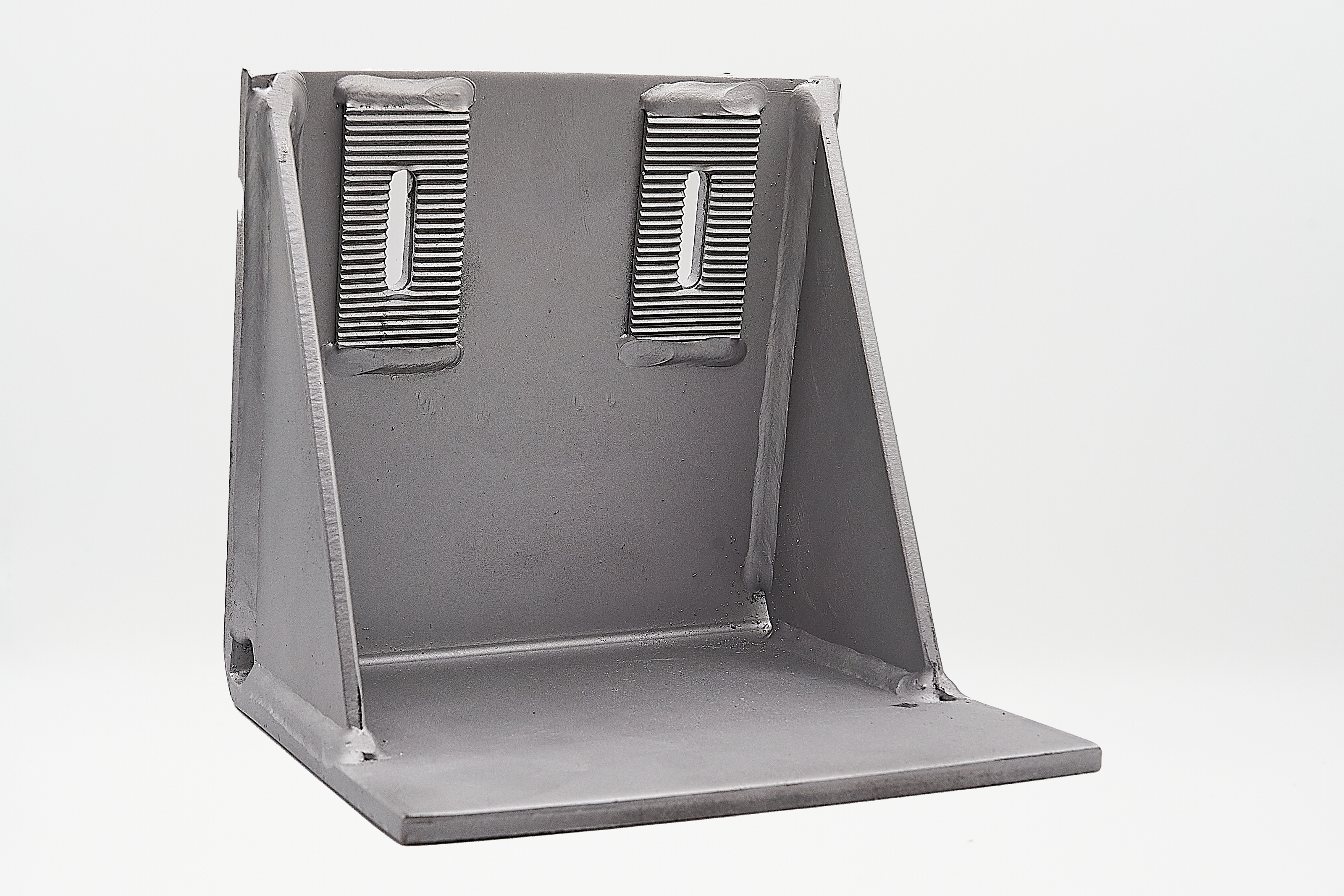 A right-angled support bracket with two vertical mount slots with welded serrated washers to allow for vertical adjustment and welded sides for added strength.