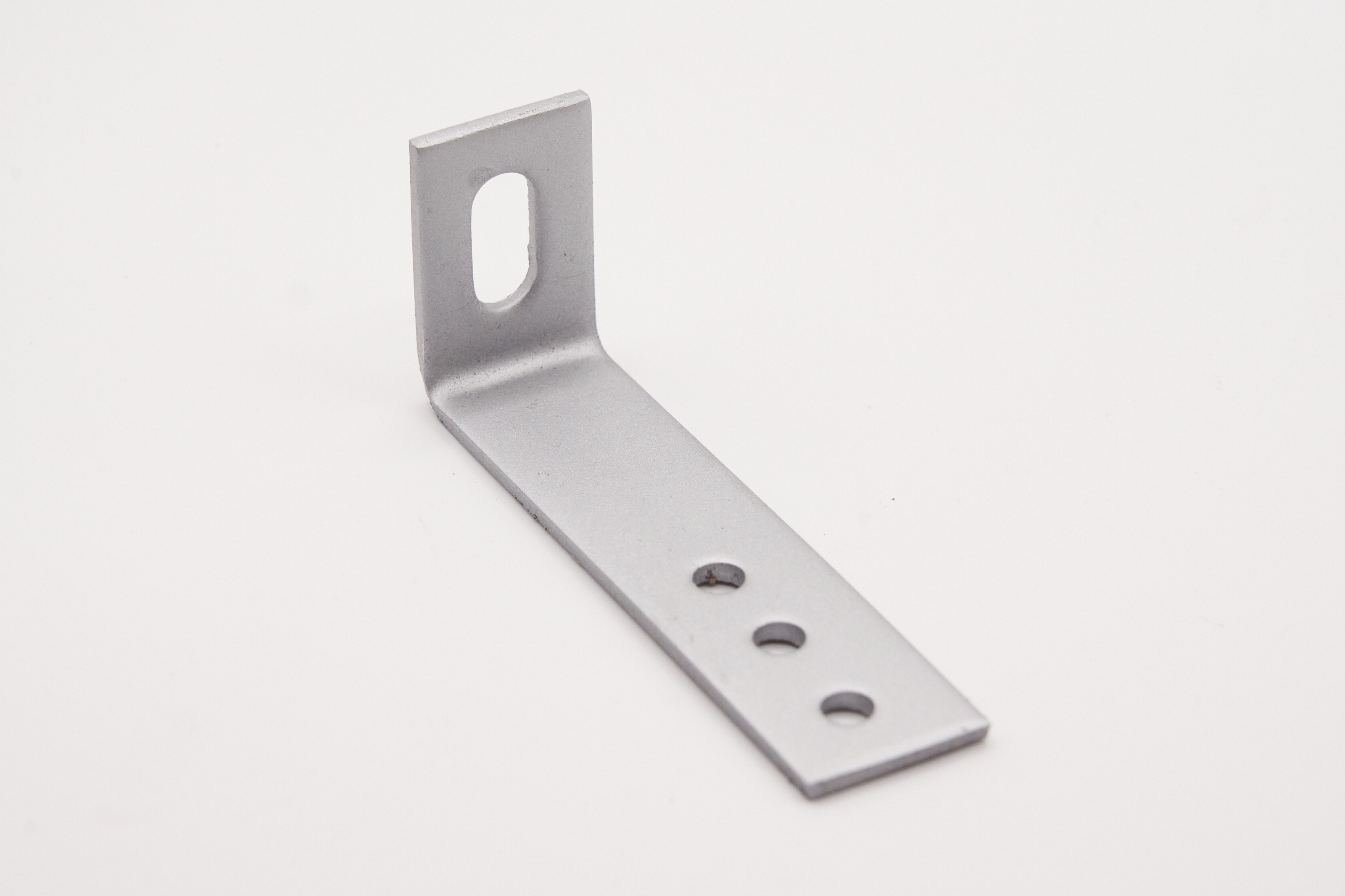 A steel restraining bracket for use with stone, concrete and bricks. Used with dowels and with a slot for vertical adjustment.