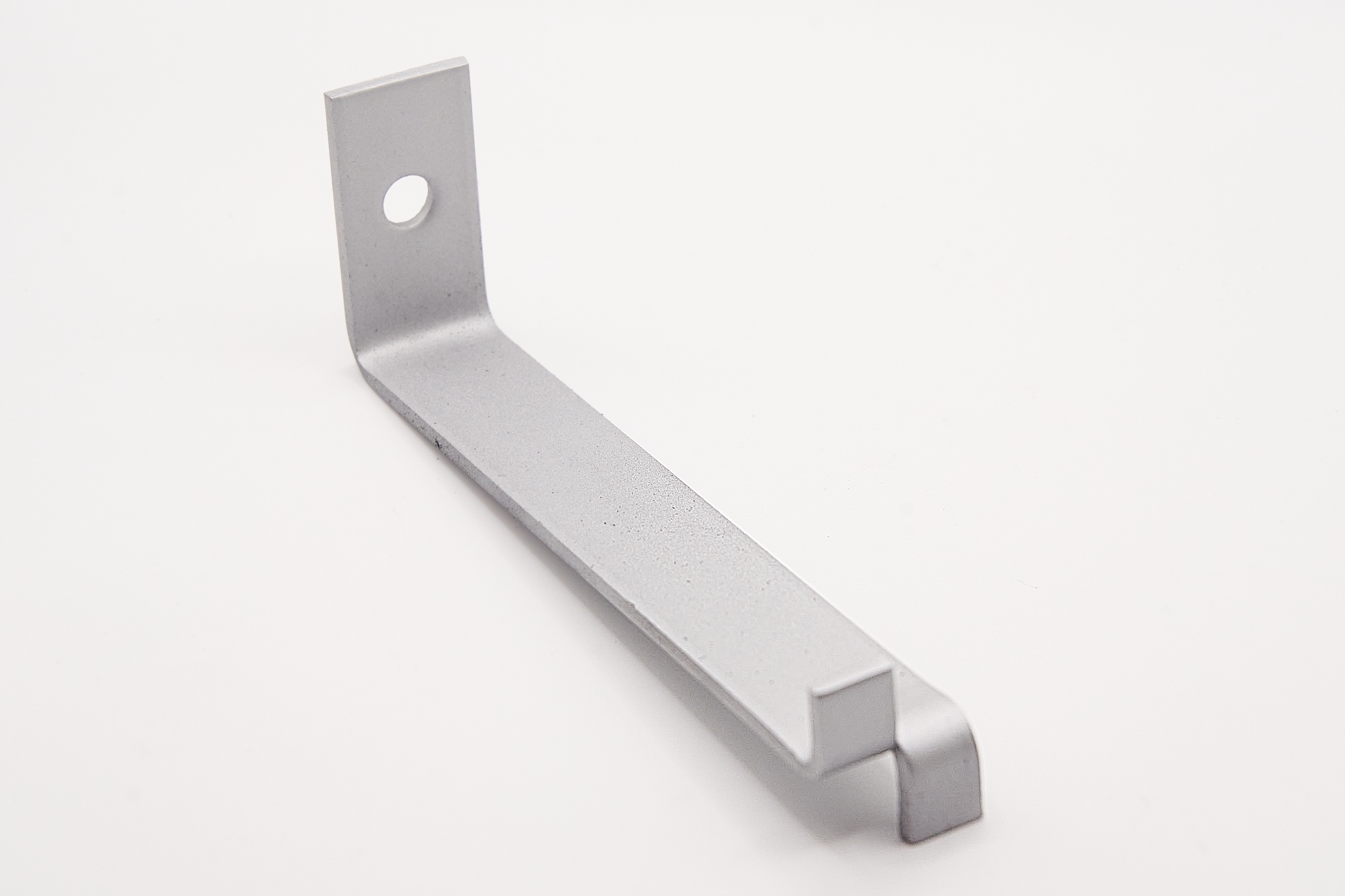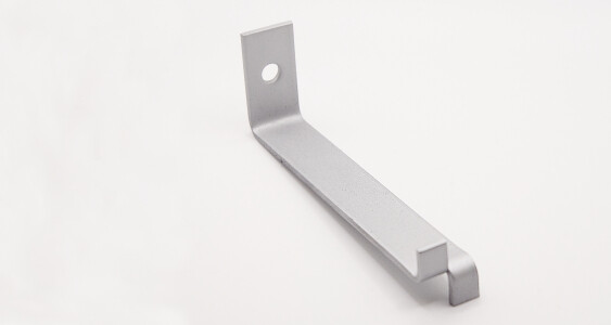 A steel restraining bracket for use with stone, concrete and bricks in a dog-leg style with a split-end tail anchor point. A single hole enables the restraint to be bolted to a wall.